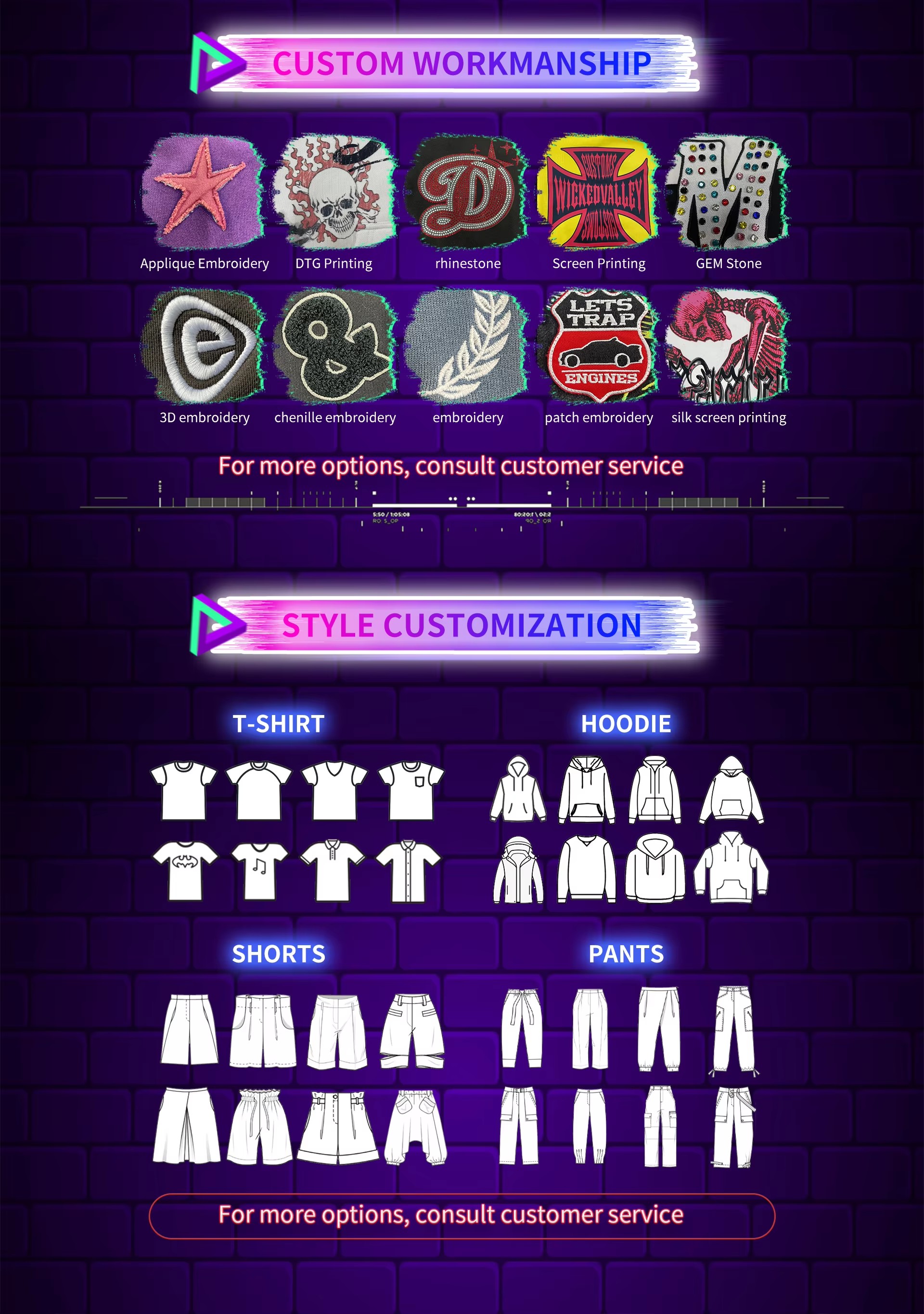 At pikafactory, We focus on providing custom services for trendy brands. We adhere to the exquisite and personalized clothing customization style, and are committed to adhering to the original and independent clothing customization design. We have a highly qualified senior customization professional team elite. Our professional services involve private customization, group uniforms, shoe customization, and other related fields. We are a highly innovative professional fashion brand clothing customization agency.